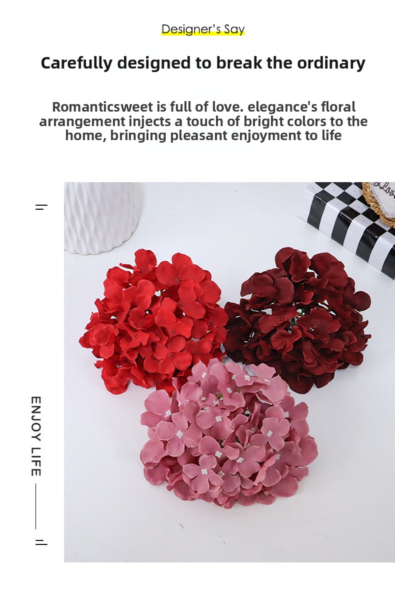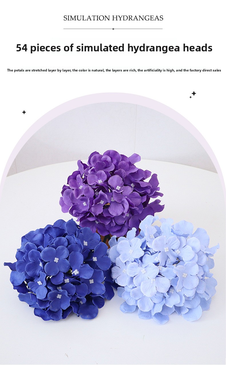 Wholesale 17cm 54-Petal Artificial Hydrangea Flower Heads Hot Sale Full-Bloom Silk Hydrangea-Without flower stems