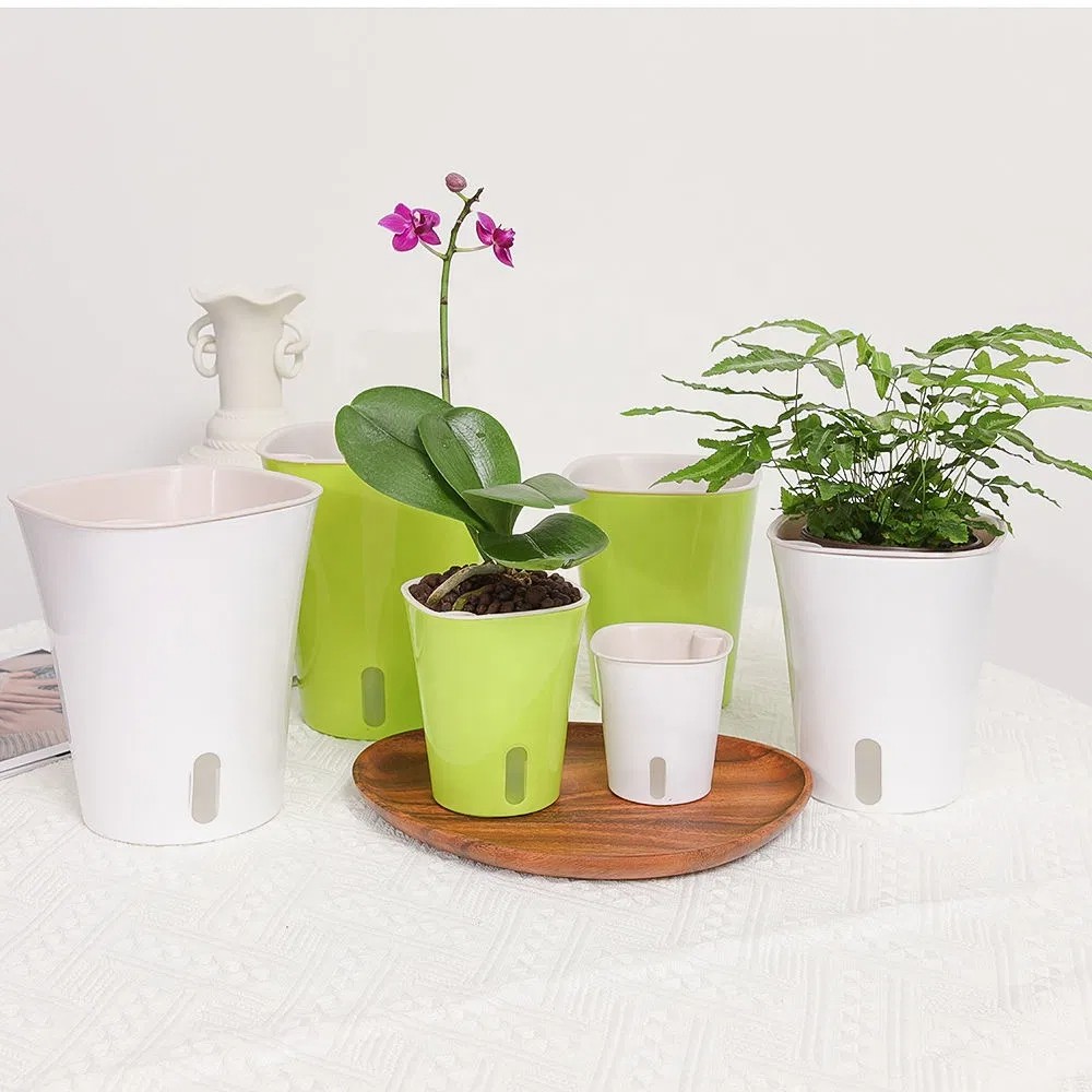 Multiple Sizes Home Garden Decoration Flower Planters Plastic Plant Self Watering Pot with Clear Inner Pot for Indoor Plants in Stock