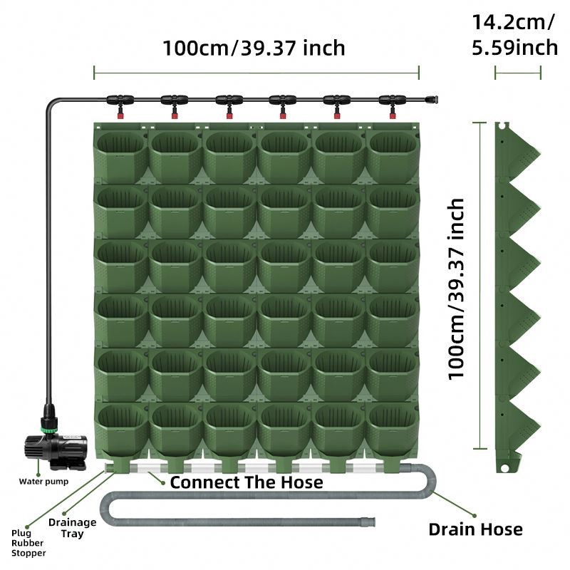 Patent Self-Circulating Hydroponic with Submersible Pump Hanging Plastic Flower Pots on The Vertical Wall Pot