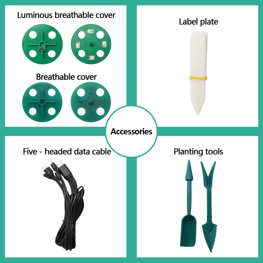 Pet Round and Square Seeding Pots/Box 6/12/15 Cells Seedling Box Nursery Green and Black Color with Light or Without Light
