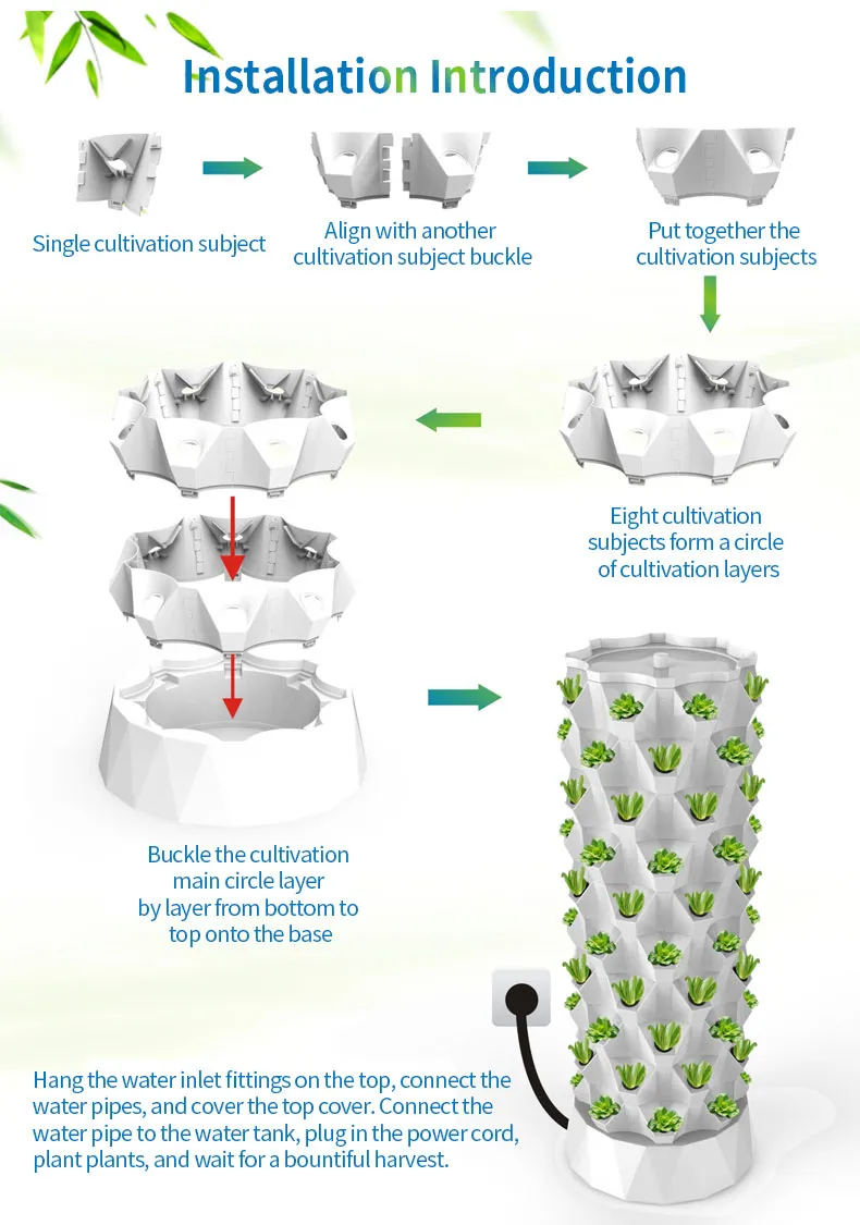Upgrade 6 Layer 48 Holes 30L Watertank Soilless Cultivation Vertical Planting Hydroponic Pineapple Tower/System for Hydroponics