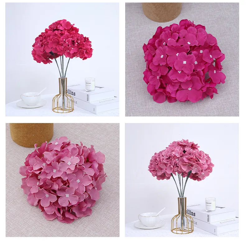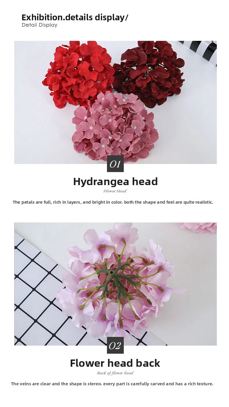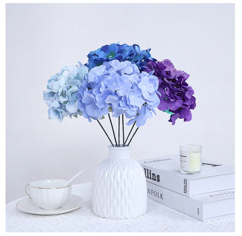 Wholesale 17cm 54-Petal Artificial Hydrangea Flower Heads Hot Sale Full-Bloom Silk Hydrangea-Without Flower Stems